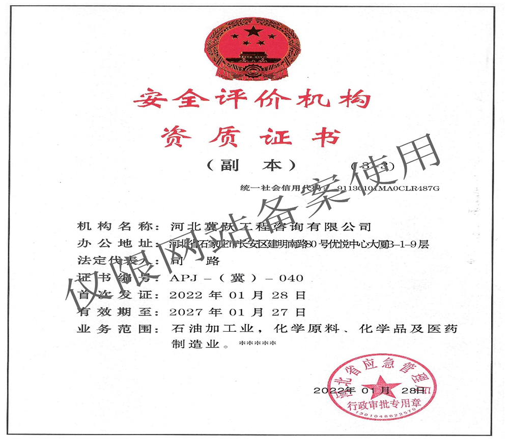 • 安全評價機構資質證書